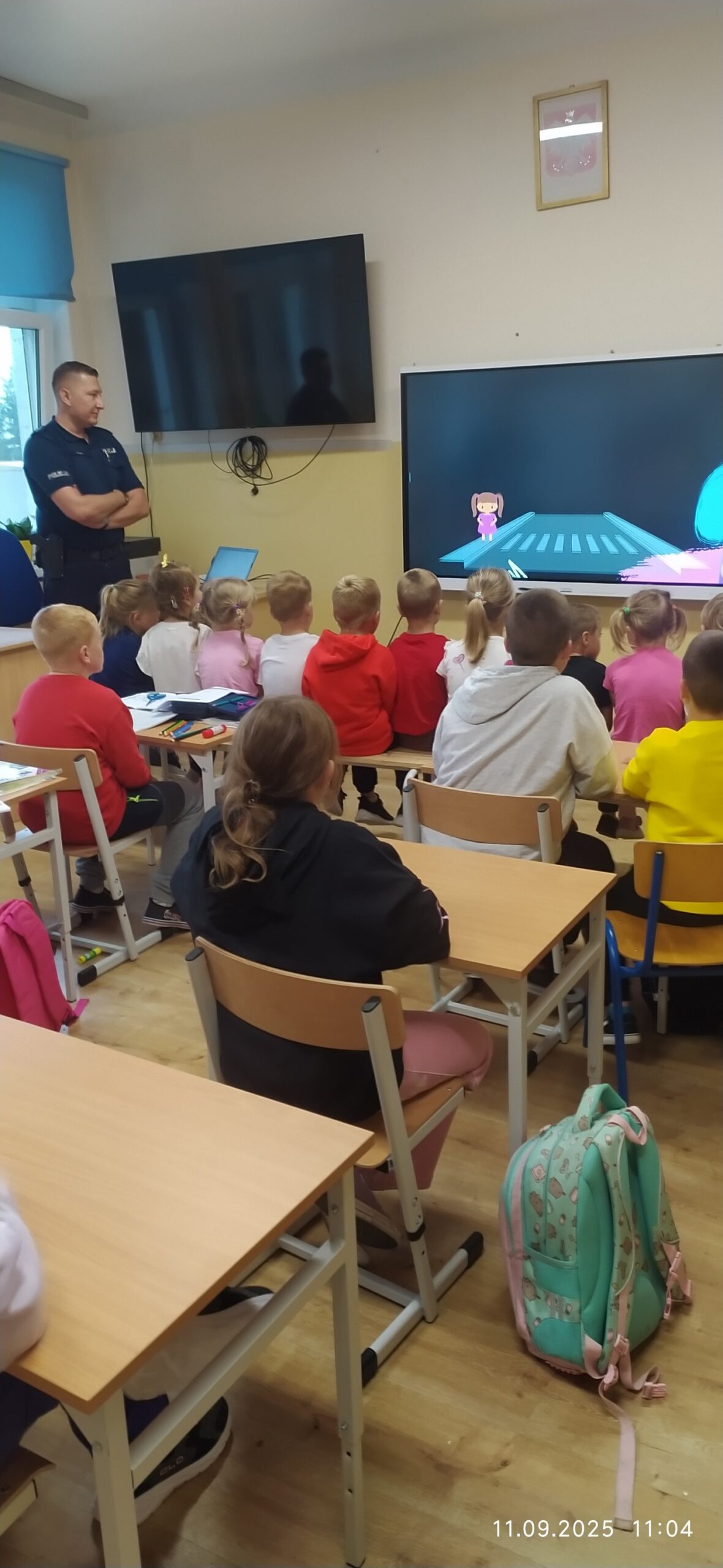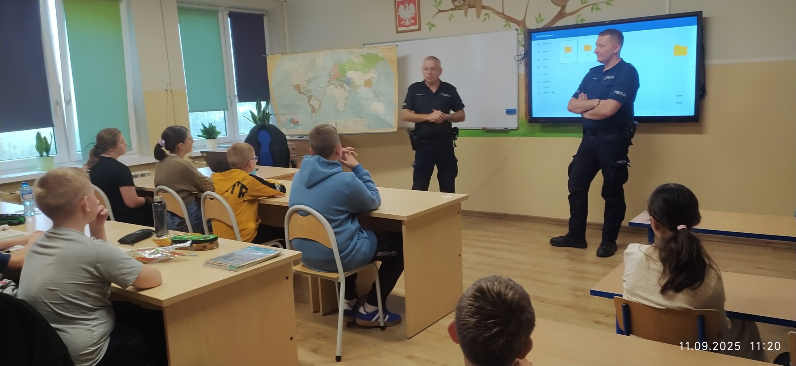 11 września naszą szkołę odwiedzili funkcjonariusze Policji, którzy przeprowadzili prelekcję dla najmłodszych oraz uczniów klas 1-8
