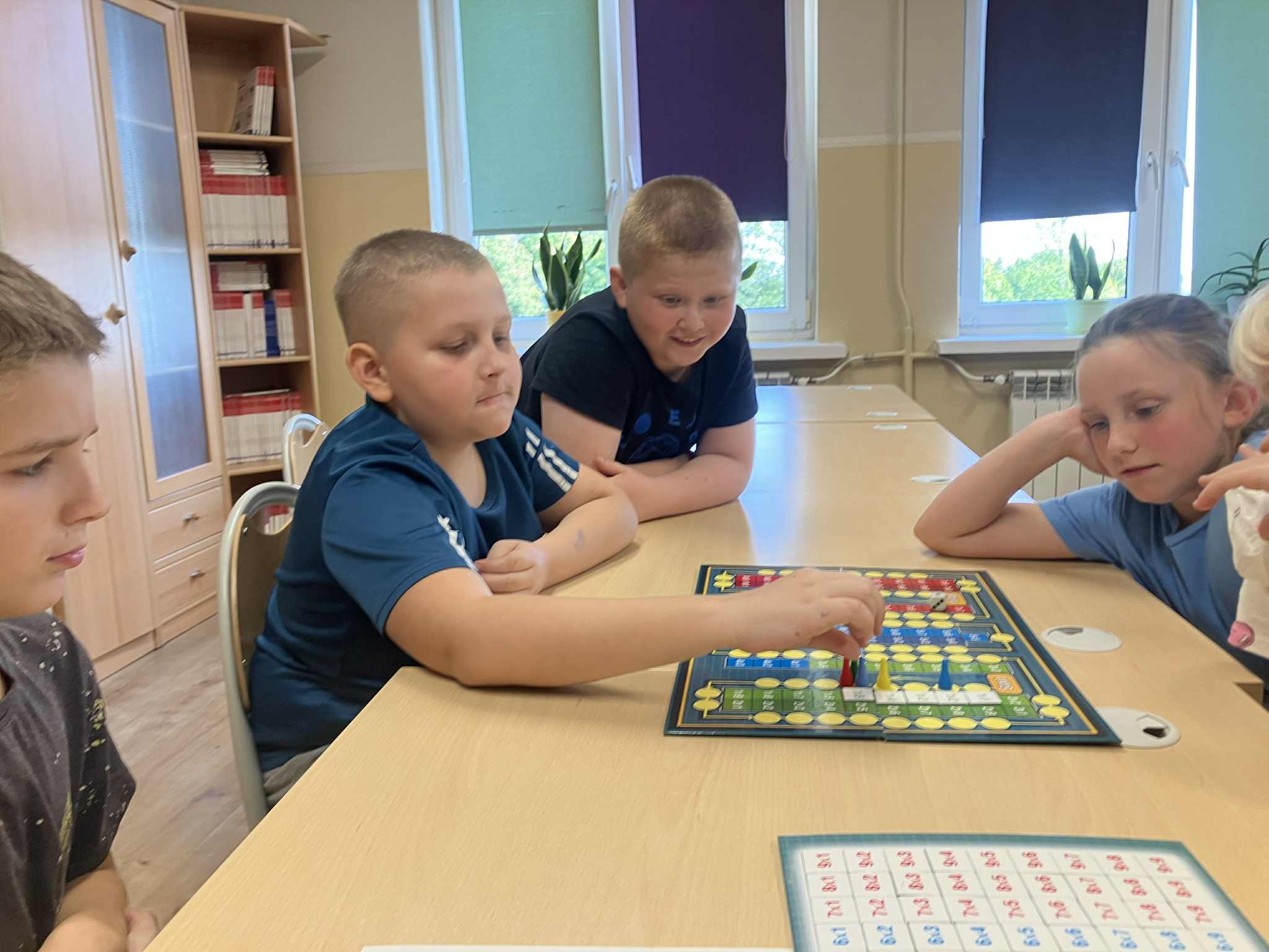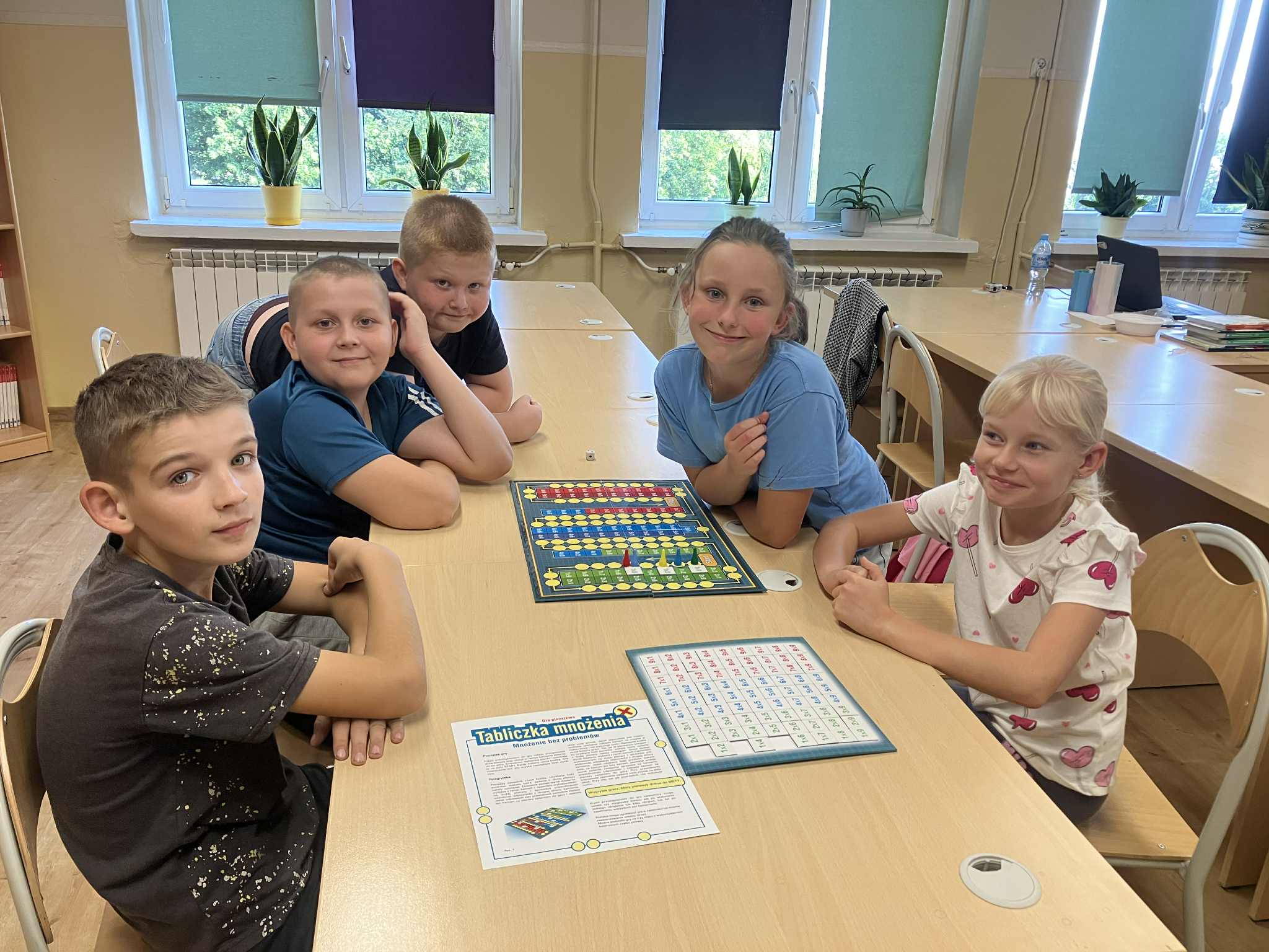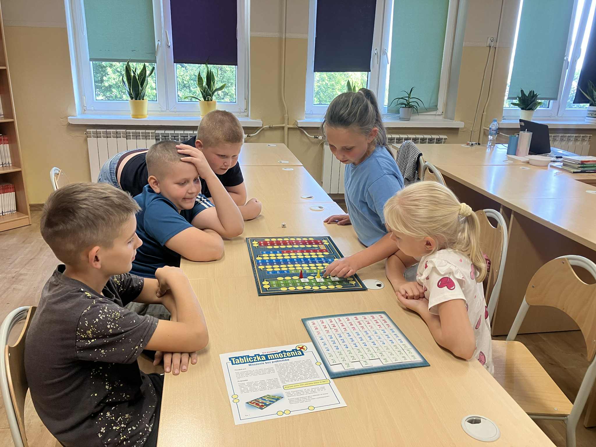 Podczas dodatkowych zajęć uczniowie 4 klasy utrwalają tabliczkę mnożenia w zupełnie inny sposób – z wykorzystaniem gier planszowych ![]()