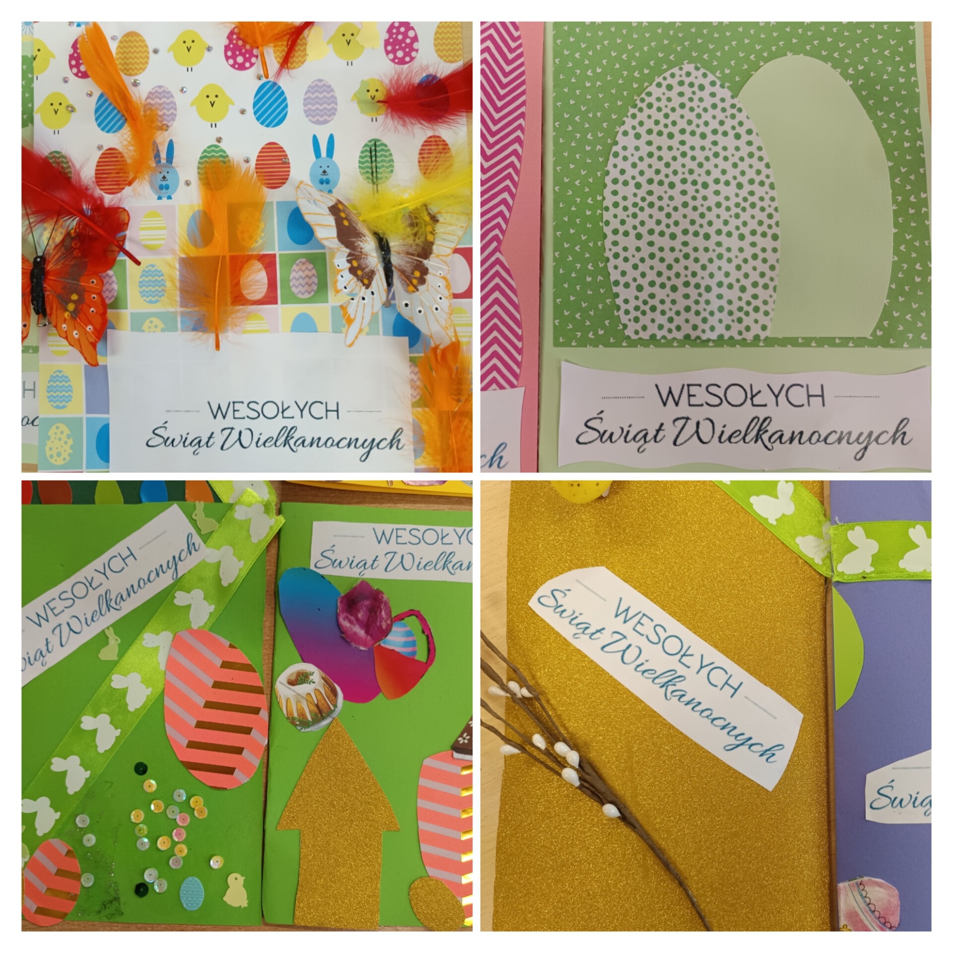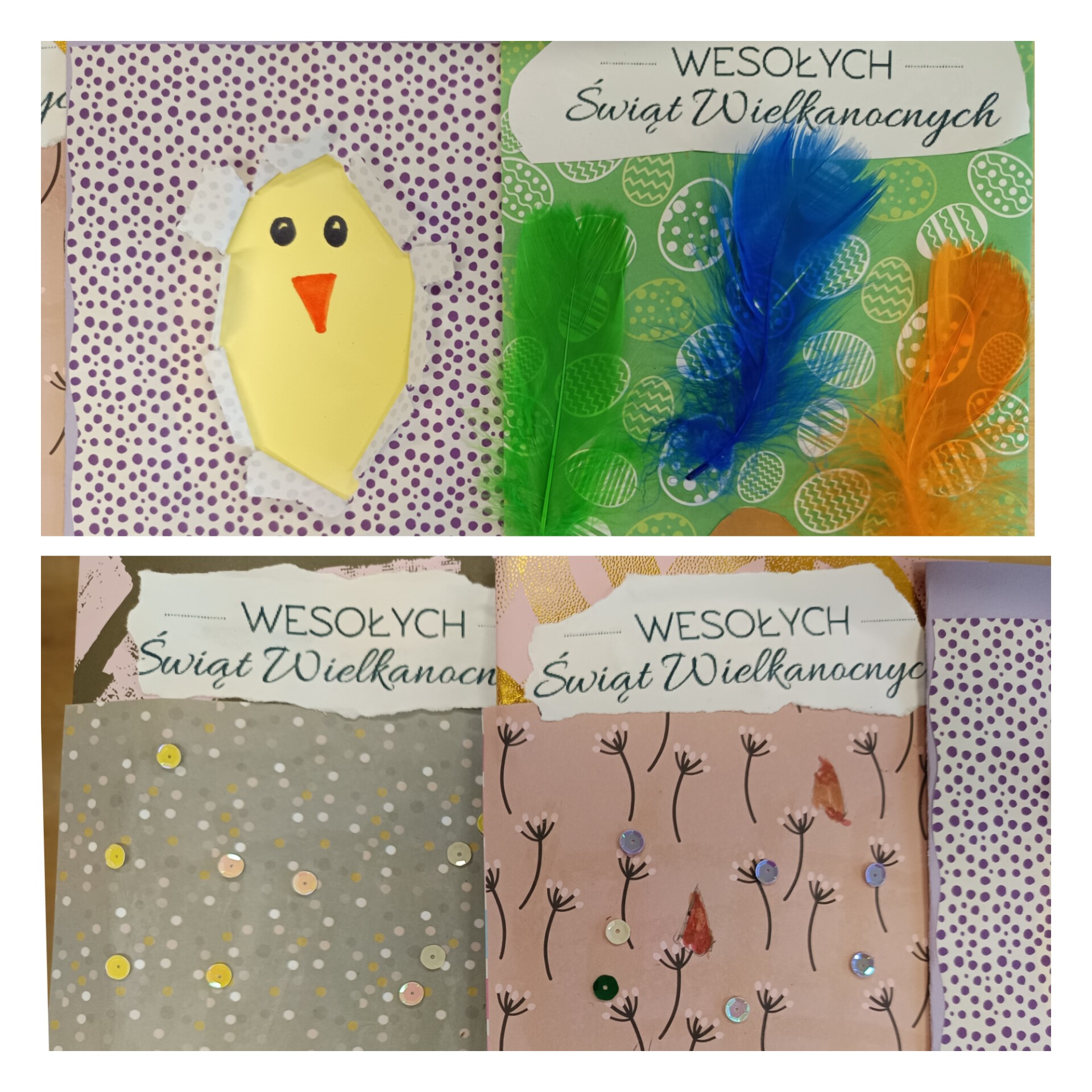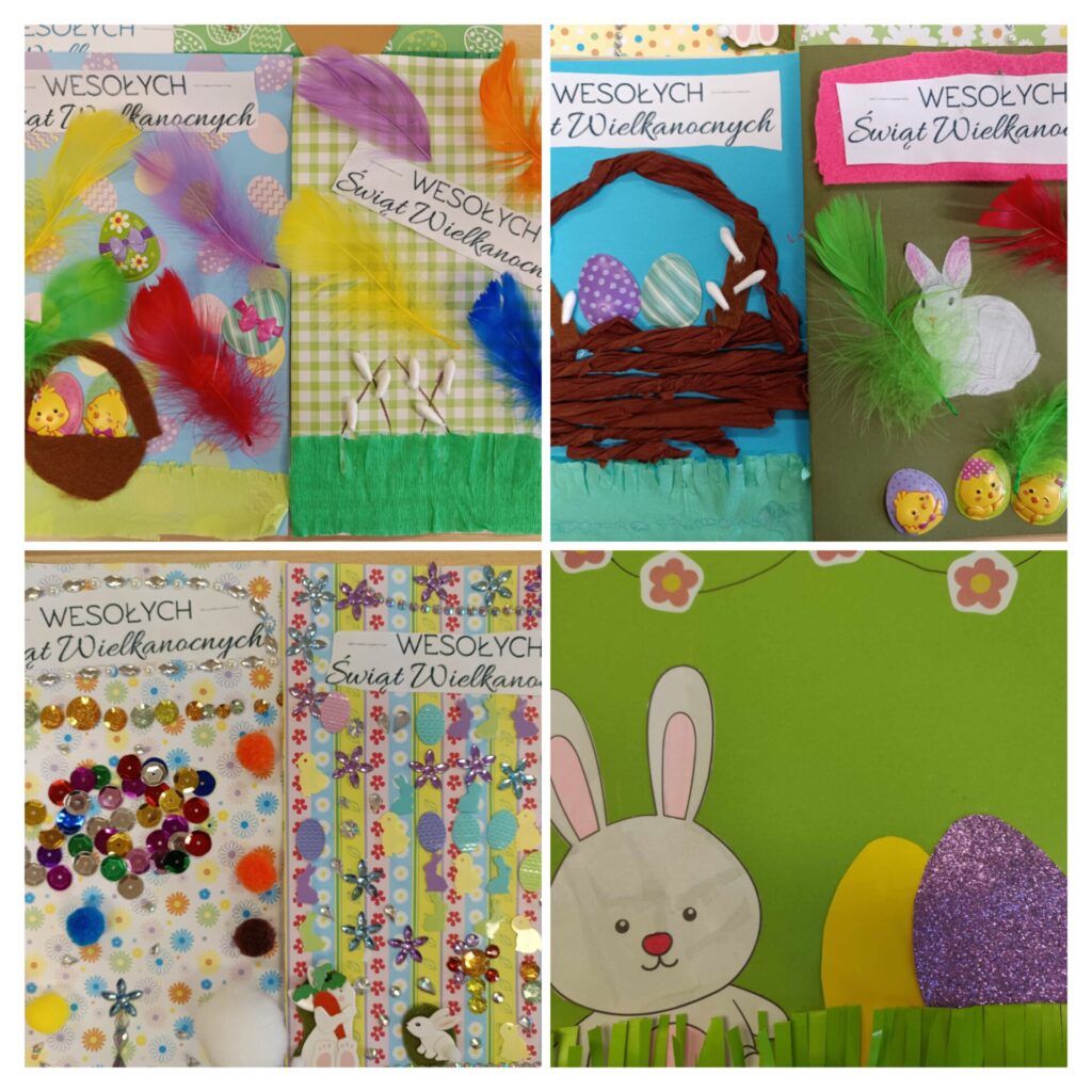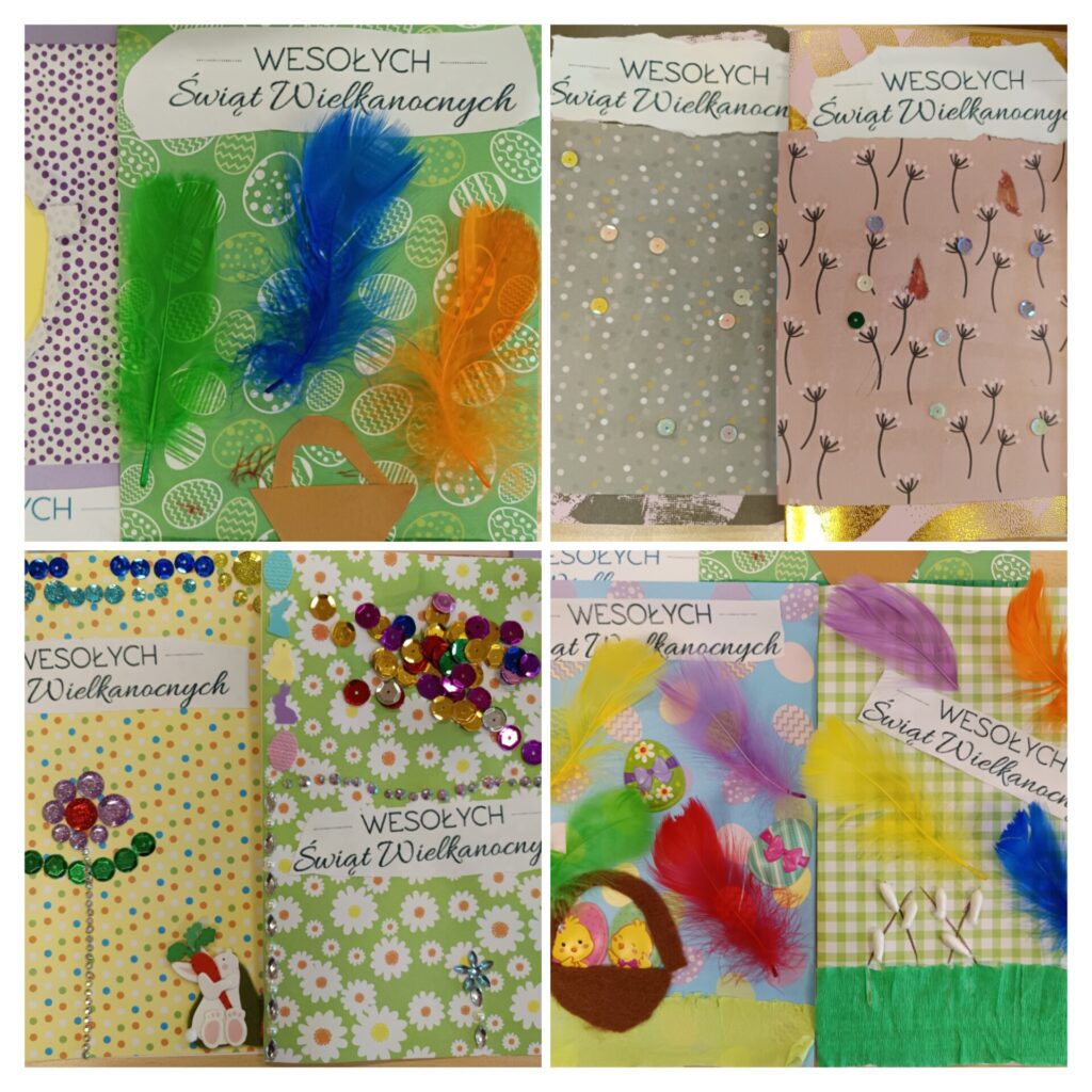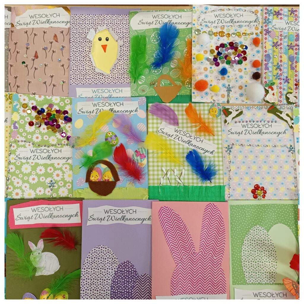 Kreatywne kartki wielkanocne wykonane przez uczniów z klas 4-7 na lekcjach plastyki. 😉